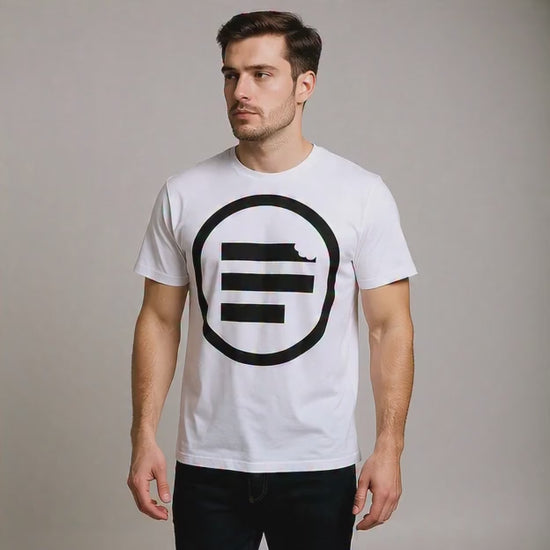O design minimalista apresenta três linhas pretas dentro de um círculo — cada uma representando um trecho da vida, da música ou do espaço que nos conecta.